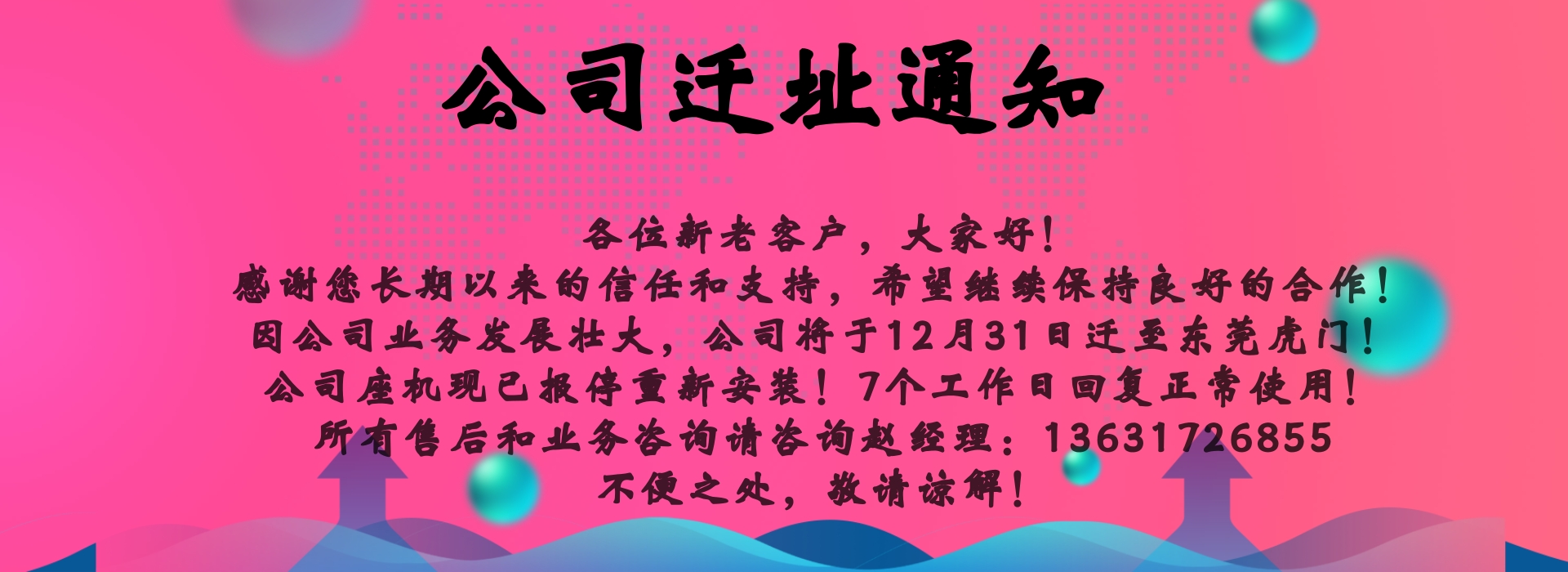 因公司业务发展壮大,公司将于12月31日迁至东莞虎门!