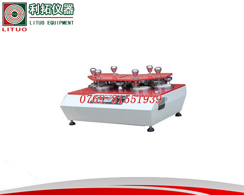 LT-XZ05-6 MARTINDALE摩擦试验机产品说明: 本机用于测试纺织品,鞋类之外层、衬里、衬底和类似织物等耐磨性。此磨耗检测仪系依据J.G.Martindale设计原理,及符合羊毛工业研究协会规格所制造出来的一种测试仪器。它利用标准羊毛毡作为磨擦物,去磨擦被检测物品如布类等,当然可依据不同测试方法、不同要求,去更改磨擦物-标准羊毛毡,为其它材料如砂纸等,以量测材料耐磨耗度或脱色度.被测物夹在一圆柱体上,并加以一标准重量(依测试方法决定,压在磨擦物上,由垂直、水平偏心轮带动,产生一李沙育(Lissajous)图型,目的在完成一多方向性磨擦测试.对一般鞋类材料,在穿着时磨擦效应测试,大多同时以干式、湿式两法检测,去模拟雨水对鞋面材料、或汗水对鞋内里的影响程度。